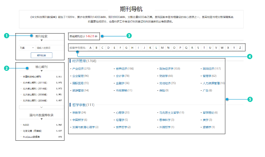 期刊导航分为期刊检索查找、期刊导航浏览两种方式。