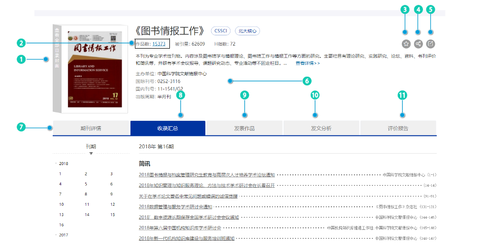- 期刊详情展示查看期刊的详尽信息,包括曾用名、主办单位、ISSN号等基本信息,以及期刊的获奖情况、国内外数据库收录情况等。