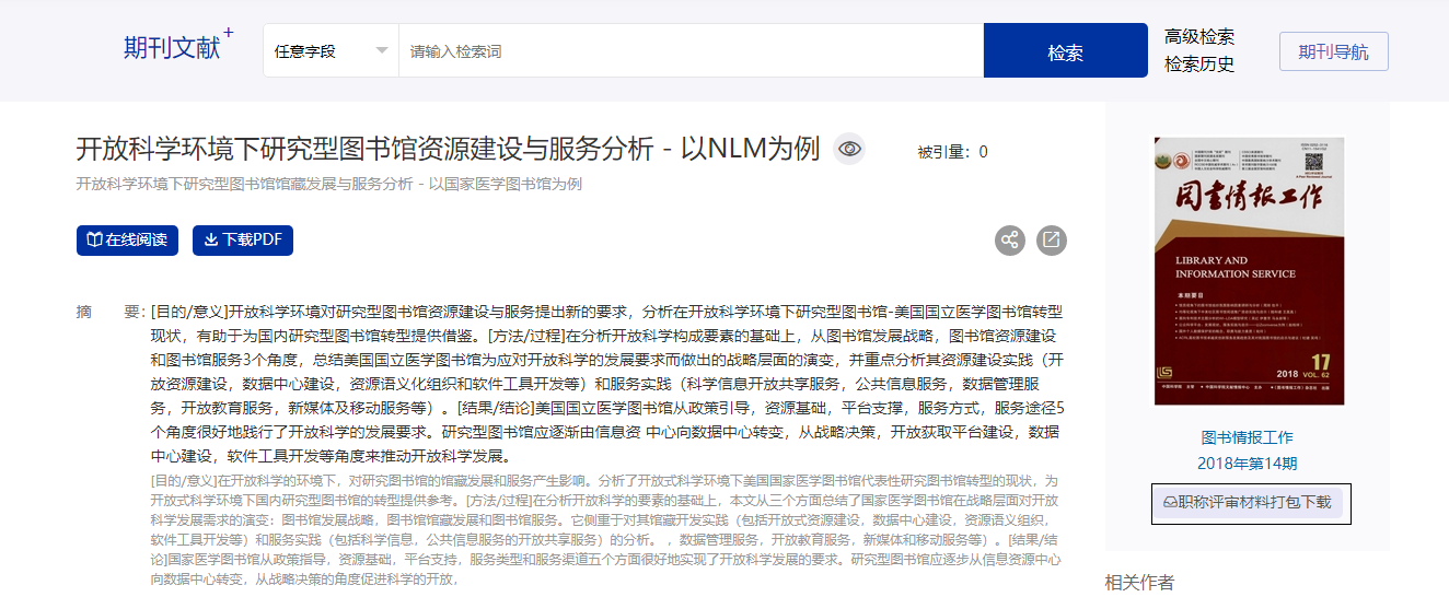 - 期刊信息展示展示该篇文章所属的期刊信息,包括刊名(封面)、该篇文章在的期次。